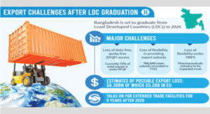 At present, a significant proportion of Bangladesh’s merchandise is exported through preferential market facilities, amounting to a staggering 75 percent. However, following its exit from the list of Least Developed Countries (LDCs), the nation is expected to suffer a colossal loss of export revenue estimated at $7 billion in 2027, which is a daunting prospect (Textile Today, 2023).