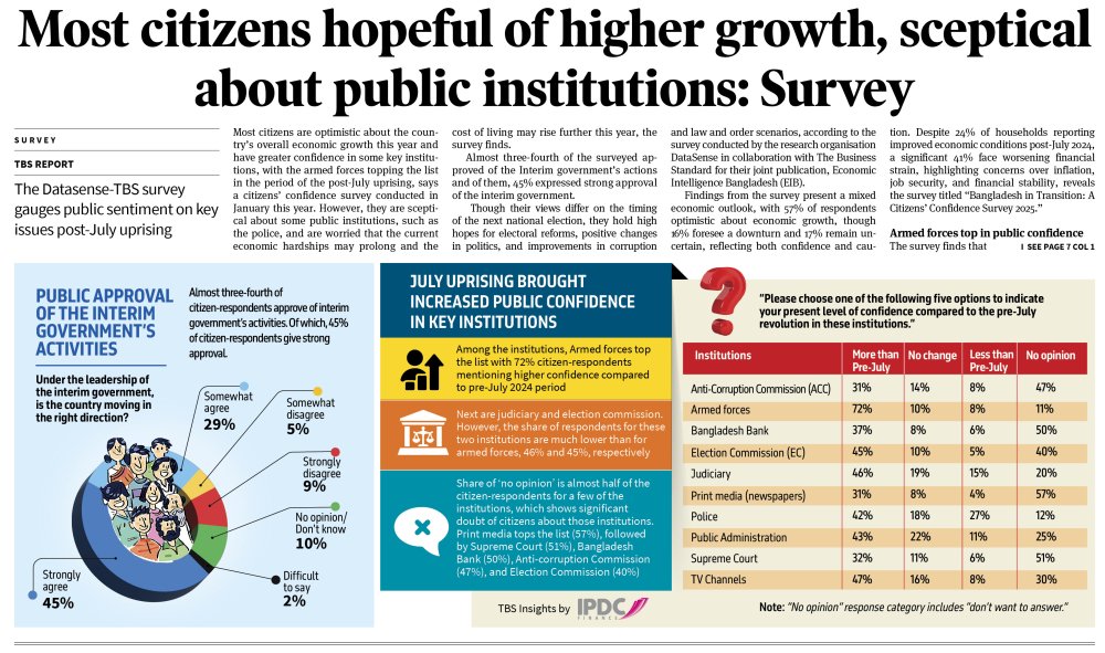Read the full article here: https://www.tbsnews.net/economy/most-citizens-hopeful-higher-growth-sceptical-about-public-institutions-survey-shows-1063471