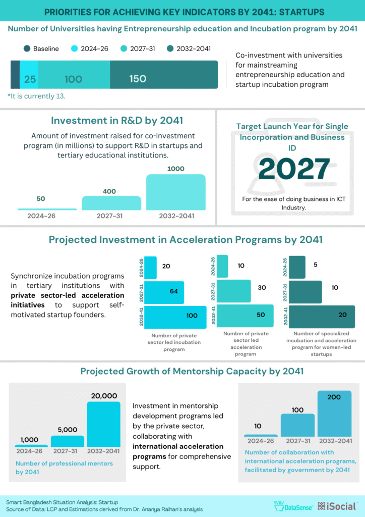 Identification of indicators, understanding baseline situation and setting milestones for ICT industry, Digital commerce, Freelancing, Entrepreneurship, and Startup Ecosystems in context of the Smart Bangladesh Agenda.