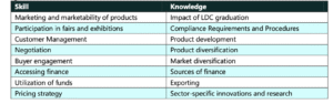 The important skills and knowledge that the entrepreneurs need to acquire in preparation of LDC graduation are as follows: